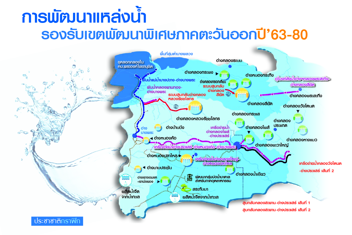 5.กลุ่มโครงการเพิ่มประสิทธิภาพการเก็บกักน้ำของแหล่งน้ำเดิม 4 โครงการ ของกรมชลประทาน เพื่อเพิ่มประสิทธิภาพการเก็บกักน้ำของอ่างเก็บน้ำเดิมในเขตพื้นที่EEC ได้แก่ โครงการเพิ่มประสิทธิภาพเก็บกักน้ำอ่างเก็บน้ำมาบประชัน จ.ชลบุรี ได้น้ำ 0.6 ล้าน ลบ.ม. ก่อสร้างปี 2564 โครงการเพิ่มประสิทธิภาพเก็บกักน้ำอ่างเก็บน้ำคลองประแกด จ.จันทบุรีได้น้ำ 19.74 ล้าน ลบ.ม. ก่อสร้างปี 2564 โครงการเพิ่มประสิทธิภาพเก็บกักน้ำอ่างเก็บน้ำบ้านบึง จ.ชลบุรี ได้น้ำ 2.4 ล้าน ลบ.ม. ก่อสร้างปี 2565 และโครงการเพิ่มประสิทธิภาพเก็บกักน้ำอ่างเก็บน้ำคลองพระสะทึง จ.สระแก้ว ได้น้ำ17.5 ล้าน ลบ.ม. ก่อสร้างปี 2565