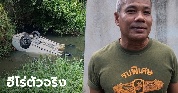 ทหารนาวิกโยธิน มองกระจกหลังเห็นรถเก๋งคว่ำตกคลอง รีบจอดรถแล้วกระโจนลงน้ำช่วยชีวิตคนขับ