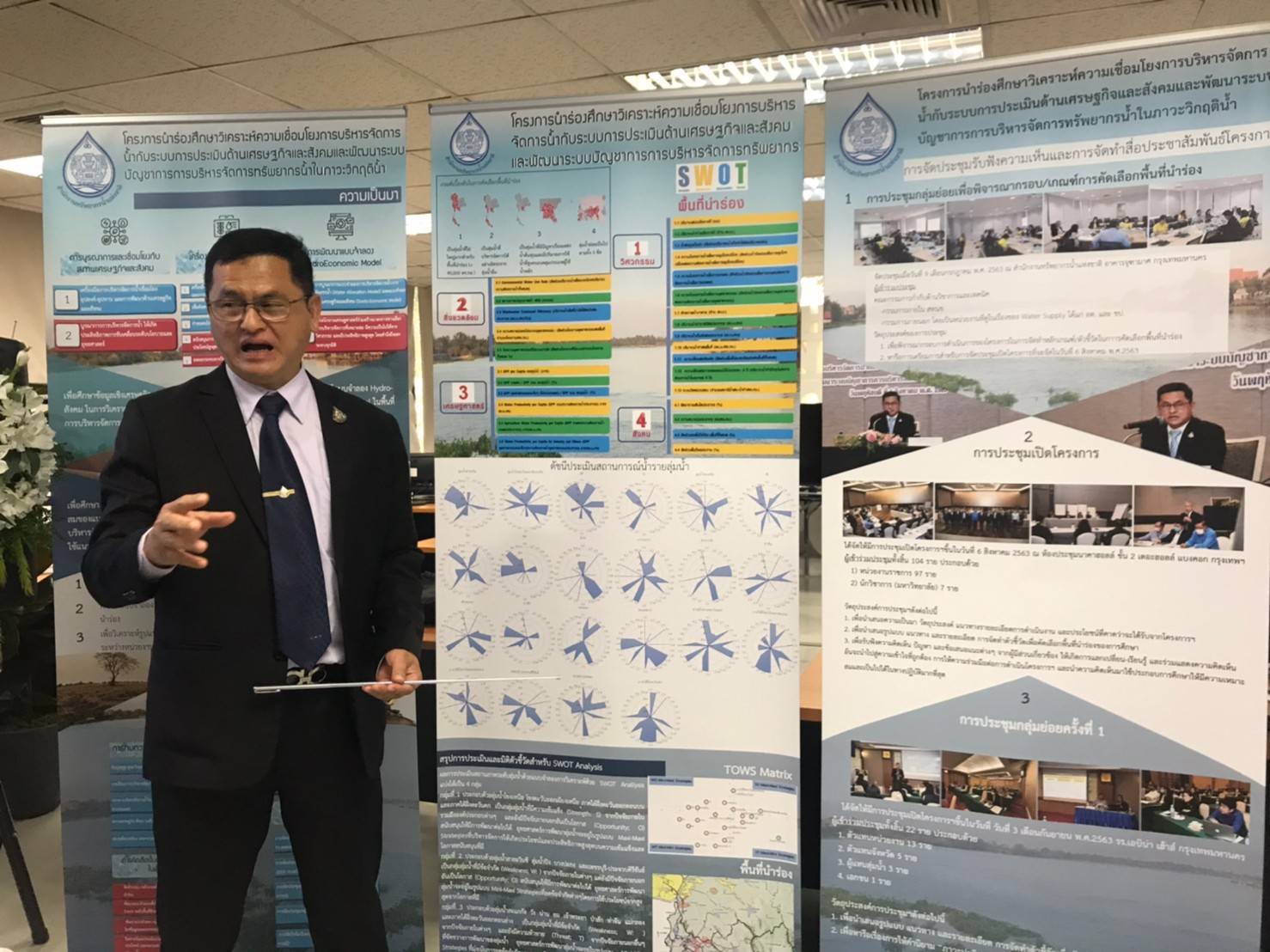 โดยคำนึงถึงด้านกายภาพของน้ำ เศรษฐกิจและสังคมในเวลาเดียวกันได้ 3. ศึกษา วิเคราะห์ความคุ้มค่าและประสิทธิภาพของการบริหารจัดการทรัพยากรน้ำ โดยวิเคราะห์ความเสี่ยง ประเมินต้นทุนและผลประโยชน์ ผลกระทบทางเศรษฐกิจและสังคมจากแผนการบริหารจัดการน้ำ และ 4. จัดทำคู่มือนำเสนอวิธีการใช้งานแบบจำลองเศรษฐกิจและอุทกวิทยา ซึ่งคาดว่าโครงการดังกล่าวจะศึกษาแล้วเสร็จภายในเดือนเมษายน ปี 2564 ” นายสมเกียรติ กล่าว